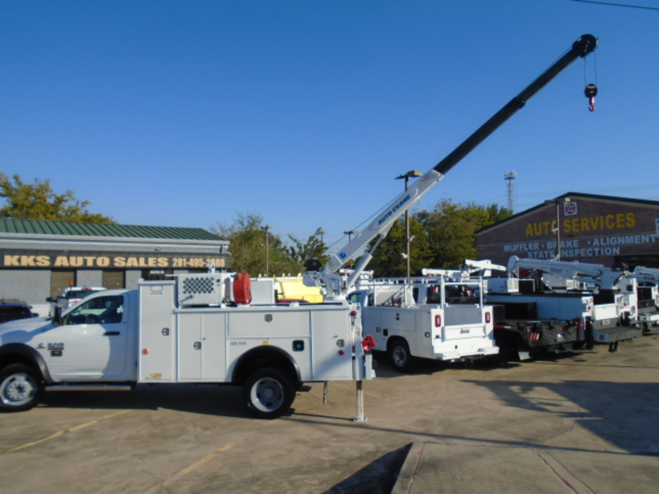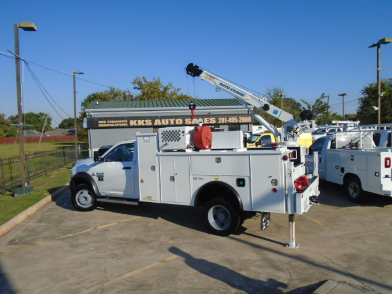 2016 RAM 5500 CRANE UTILITY TRUCK , 6.7 DIESEL ENGINE AND AISIN AS69RC 6 SPEED AUTOMATIC TRANSMISSION, CRANE IS AUTO CRANE 6406 HYDRAULIC, COMPRESSOR AND OUTRIGGERS ARE ALL HYDRAULIC, THEY ALL BEEN CHECKED ARE WORKING JUST FINE ,NO LEAKS , ENGINE AND TRANS ARE WORKING JUST FINE AND THERE IS NO LEAKS, THERE IS 2 SETS OF MECHANIC DRAWERS ON DRIVER SIDE, ALL TRUCKS ARE FULLY SERVICED AND WE CAN MAKE THEM DODGE CERTIFIED AT CUSTOMERS NAME , TRUCK COMES WITH FREE SHIPPING UP TO 1200 MILES , PLEASE FEEL FREE TO CALL SHAW AT 832-868-7877