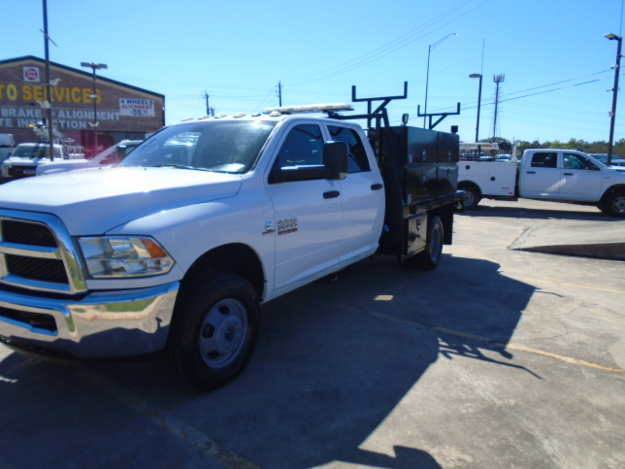 2018 RAM 3500 4X4 CREW CAB FLATBED UTILITY TRUCK VOMAC AIR COMPRESSOR , CUMMINS 6.7 DIESEL ENGINE AND AISIN 6 SPEED AUTOMATIC, VOMAC COMPRESSOR SYSTEM AND ECCO LIGHTING FOR TOP AND AROUND THE TRUCK , TRUCK RUNS GREAT,THERE IS NO FRONT END PROBLEMS, THERE IS NO ENGINE OR TRANSMISSION LEAK, TRUCK RUNS AND LOOKS GREAT , AT CUSTOMER REQUEST WE CAN MAKE IT DODGE CERTIFIED IN CUSTOMERS NAME , TRUCK COMES WITH FREE SHIPPING UP TO 1200 MILES , PLEASE FEEL FREE TO CALL SHAW AT 832-868-7877