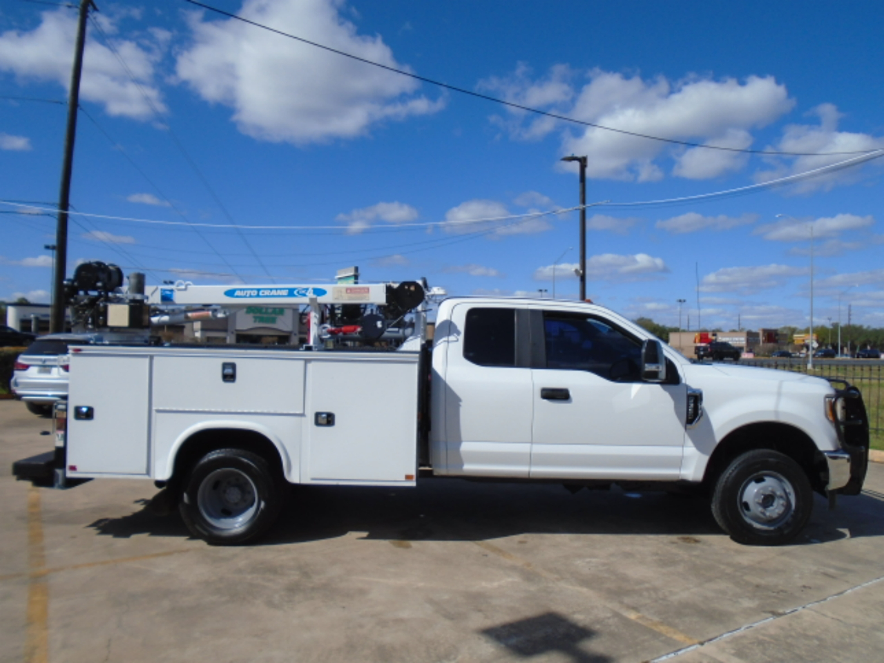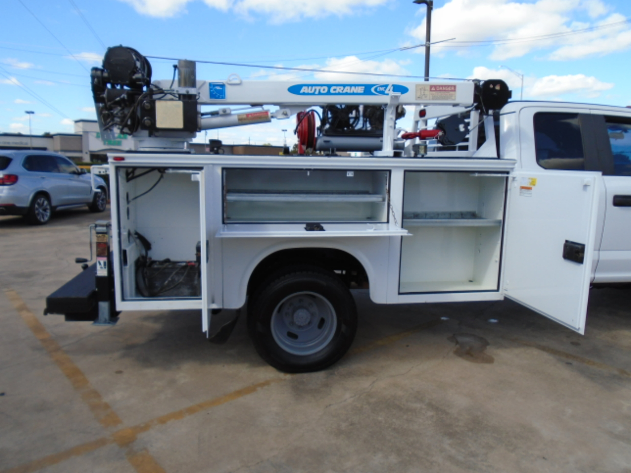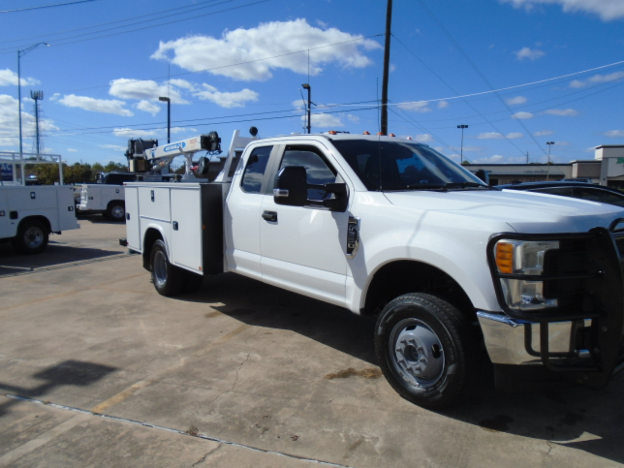 2017 FORD F-350 4X4 EXT CAB UTILITY CRANE TRUCK , CRANE IS AUTO EHC 4 CRANE 4000 LB WIRELESS REMOTE , COMPRESSOR, 6.2 GAS ENGINE THAT IS BEEN SERVICED ,NO ENGINE OR TRANS OR ANY OTHER LEAKS, BRAND NEW TIRES RUNS GREAT NO FRONT END ISSUES, TRUCK IS IN VERY GOOD CONDITION, AT CUSTOMER REQUEST WE CAN MAKE IT FORD CERTIFIED IN THEIR NAME , TRUCK COMES WITH FREE SHIPPING UP TO 1200 MILES ,PLEASE FEEL FREE TO CALL SHAW AT 832-868-7877