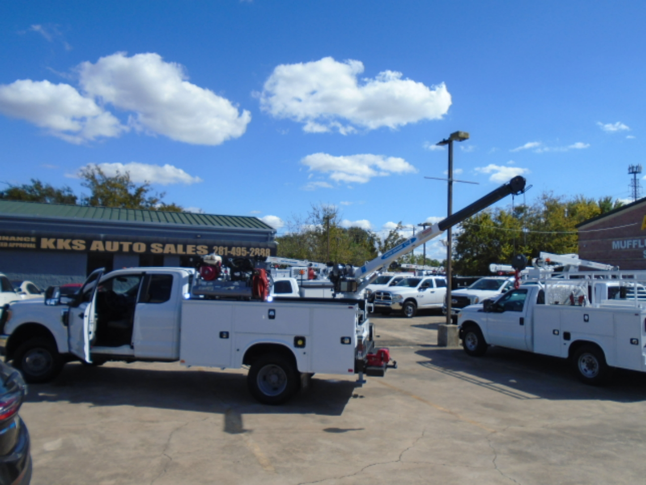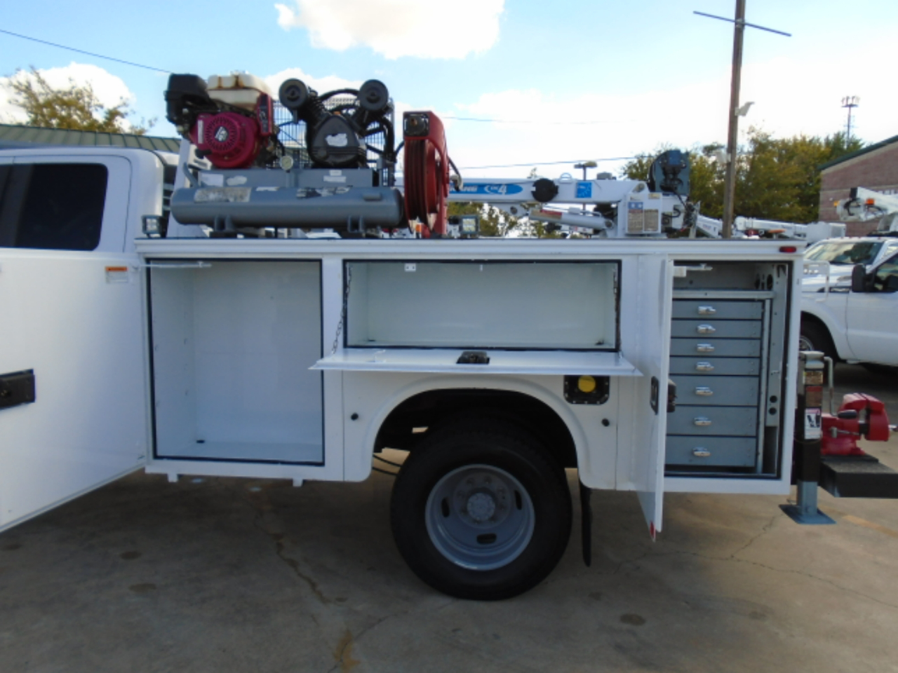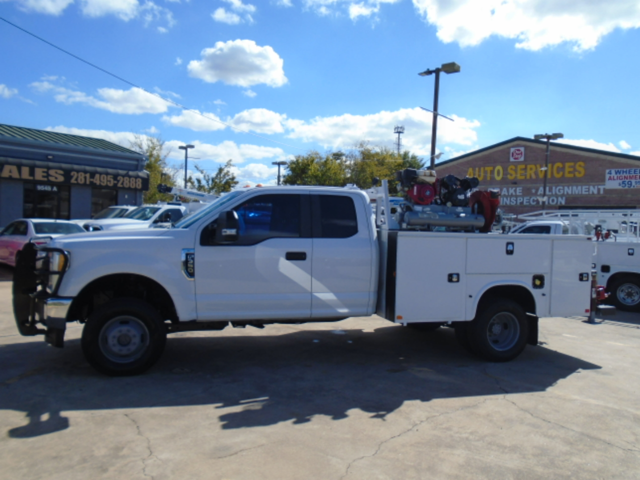2017 FORD F-350 4X4 EXT CAB UTILITY CRANE TRUCK , CRANE IS AUTO EHC 4 CRANE 4000 LB WIRELESS REMOTE , COMPRESSOR, 6.2 GAS ENGINE THAT IS BEEN SERVICED ,NO ENGINE OR TRANS OR ANY OTHER LEAKS, BRAND NEW TIRES RUNS GREAT NO FRONT END ISSUES, TRUCK IS IN VERY GOOD CONDITION, AT CUSTOMER REQUEST WE CAN MAKE IT FORD CERTIFIED IN THEIR NAME , TRUCK COMES WITH FREE SHIPPING UP TO 1200 MILES ,PLEASE FEEL FREE TO CALL SHAW AT 832-868-7877